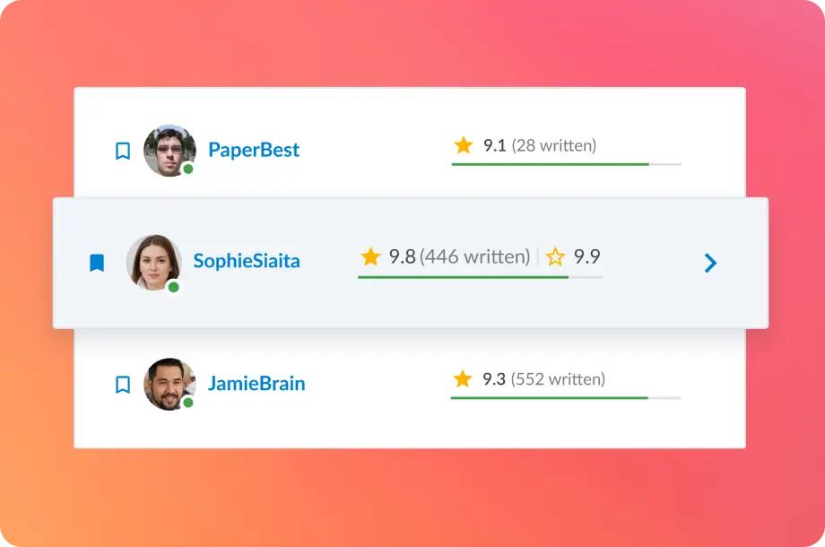 Assign a writer who’ll assist you with the paper. You can choose among those bidding for your order — visit their profiles to check their expertise and customer reviews to see who best matches your instructions — or let us pick an expert for you.